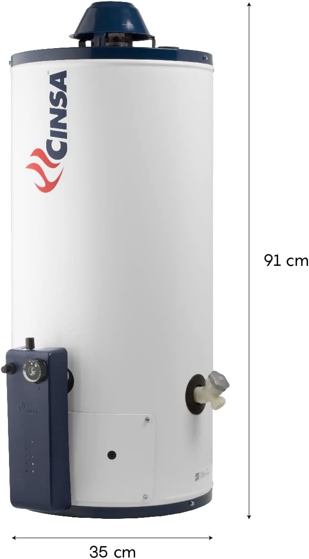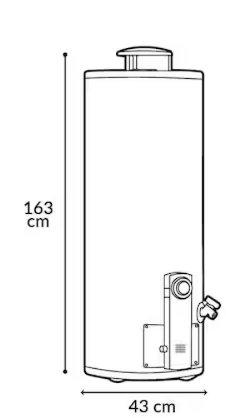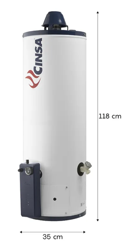 Es un calentador de depósito que tiene capacidad para 132 litros y es recomendable para 4 servicios. Cuenta con aislante térmico que mantiene la temperatura por más tiempo beneficiándote así en el ahorro de gas, además dura 10 años más, gracias a que tiene un depósito porcenalizado que evita que se pique. Sus medidas son ?43 x 163 cm.