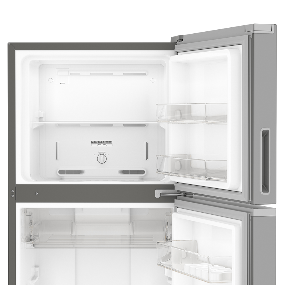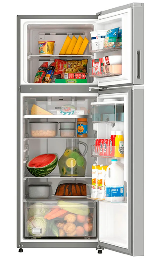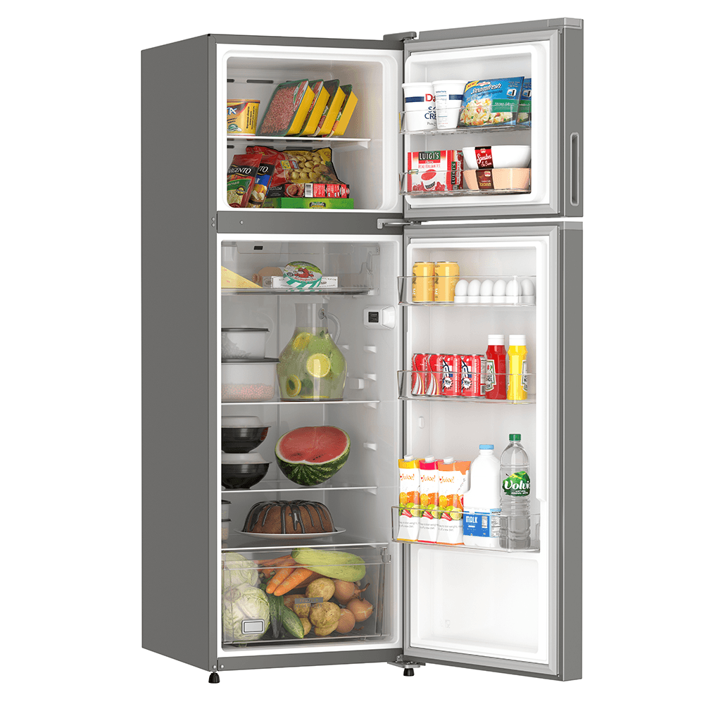 Refrigerador Top Mount con tecnología Xpert Energy Saver para un consumo eficiente de energía y 10 años de garantía en el compresor. Manejo de espacios con Xpert Spaces para mayor capacidad de almacenamiento. Cuenta con dispensador de agua exterior, fábrica de hielo portable Twist-Ice, sistema de deshielo Auto Defrost, luz LED, puerta reversible, cajón con control de humedad para preservación de frutas y verduras, anaqueles en puerta con capacidad de galón y cajón Cold Space para carnes frías.