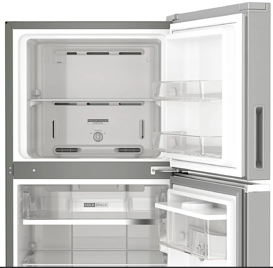 Refrigerador Top Mount 395 L / 14 p³ color Inox Steel Pro Antifingerprint (look acero inoxidable), tenconolgía Xpert Energy Saver con 10 años de garantía en el compresor, #1 en manejo de espacio con Xpert Spaces con 50% más espacio para tus frutas y verduras*, dispensador de agua con capacidad de hasta 4 L. Además cuenta con puerta reversible y luz LED para una mayor visibilidad, sistema de evaporador sencillo, sistema de deshielo Auto Defrost y charola para hielos. Además incluye 3 parrillas de cristal templado, cajón con control de humedad para frutas y verduras, cajón Cold Space para carnes frias, un anaquel con capacidad de galón y 1 fijo. También incluye jaladeras integradas, control electrónico, control de humedad y control de temperatura electrónico. *Prueba controlada simuladora de capacidad y organización en cajones de frutas y verduras con hasta cierto peso en kilogramos.