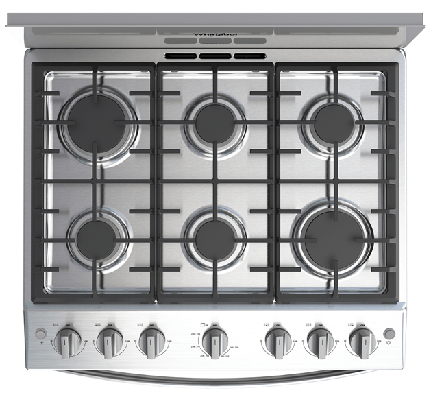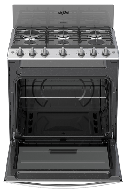 La Estufa de Piso WFR3400D de 30 pulgadas cuenta con 6 quemadores de aluminio (4 estándar y 2 jumbo) y 3 parrillas de alambrón que te permiten preparar diversos platillos a la vez. Tiene 7 perillas ergonómicas, su encendido es electrónico y su diseño con cubierta sellada de acero inoxidable te permite una fácil limpieza y dan un toque de elegancia y modernidad a tu cocina. Cuenta con tecnología EverClean que ayuda a la limpieza interior del horno y evita la acumulación de olores.