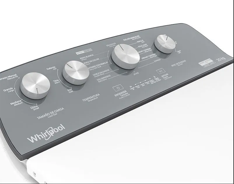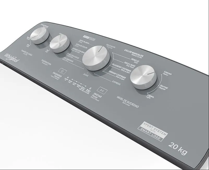 Lavadora Carga Superior de 20 kg color blanco con panel Chrome Shadow, cuenta con sistema de lavado Xpert System, el mejor sistema de lavado que remueve las manchas más difíciles mejor que otros*. Cuenta con Smart Load: conoce el nivel de tamaño de tu ropa seca y elige el tamaño correcto de carga. (CH, M o G) y Llenado Manual. Con Agitador Double Action: 8 movimientos expertos de lavado para una mejor limpieza de las prendas. 12 ciclos, (3 ciclos Xpert: Ropa de Color, Ropa Blanca, nuevo ciclo Intenso con Remojo) Doble Enjuague, Voluminosos, Jeans, Express, Delicados, Remojar, Solo Lavar, Enjuagar y Exprimir, Drenar y Exprimir. 3 temperaturas de agua: Fría, Tibia y Caliente. 3 niveles de suciedad: Ligero, Normal e Intenso. Incluye depósitos automáticos para tu mayor comodidad de Suavizante y Blanqueador, Bloqueo de tapa, Luz LED Indicadora de la Etapa del Ciclo. Además, 10 años de garantía en el motor. *En su clase, con las 5 manchas más comunes basado en el procedimiento estándar NMX (siglas de «Norma Mexicana»). Para máquinas lavadoras de ropa de uso doméstico la norma NMX-J-528-ANCE-2001 específica métodos para medir la eficiencia de lavado.