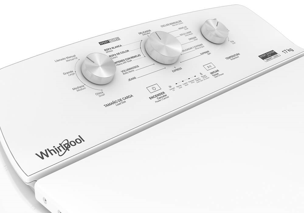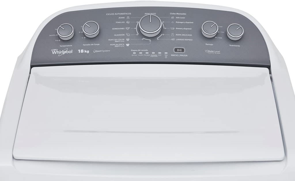 Lavadora Carga Superior de 17 kg color blanco con panel blanco, cuenta con sistema de lavado Xpert System: el mejor sistema de lavado que remueve las manchas más difíciles mejor que otros*. Cuenta con Smart Load: conoce el nivel de tamaño de tu ropa seca y elige el tamaño correcto de carga. (CH, M o G). Con Agitador Single Action (6 movimientos expertos) 12 ciclos, (3 ciclos Xpert: Ropa de Color, Ropa Blanca, nuevo ciclo Intenso con Remojo) Voluminosos, Jeans, Express, Delicados, Remojar, Solo Lavar, Enjuagar y Exprimir, Drenar y Exprimir. 3 temperaturas de agua: Fría, Tibia y Caliente. Incluye depósitos automáticos para tu mayor comodidad de Suavizante y Blanqueador. Bloqueo de tapa, Luz LED Indicadora de la Etapa del Ciclo. Además, 10 años de garantía en el motor. *En su clase, con las 5 manchas más comunes basado en el procedimiento estándar NMX (siglas de «Norma Mexicana»). Para máquinas lavadoras de ropa de uso doméstico la norma NMX-J-528-ANCE-2001 específica métodos para medir la eficiencia de lavado.