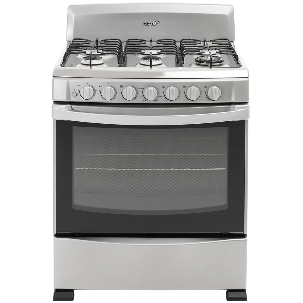 Estufa al piso 30″ en color Titanio con la que tu cocina lucirá moderna y actual; equipada con 3 parrillas de alambrón, 6 quemadores de aluminio de los cuales incluye un exclusivo Estándar MAX con el que ahorrarás hasta 24% de gas, cubierta de acero inoxidable, nuevas perillas y horno de 5.1 p³ con ventana panorámica y sistema de cerrado suave.